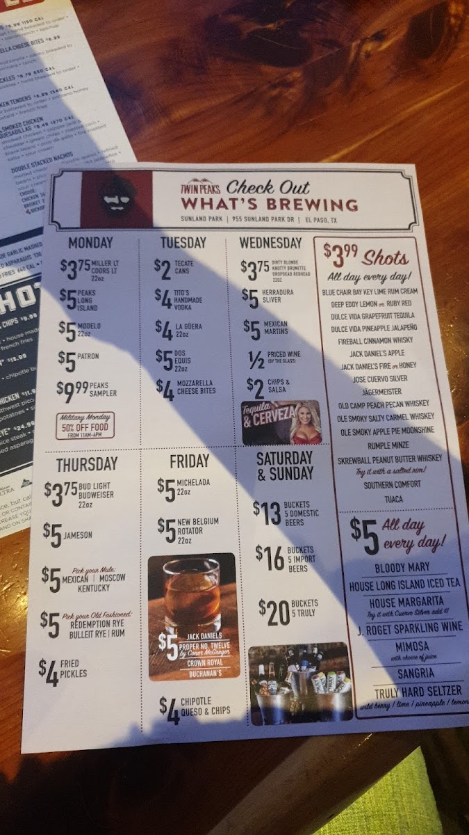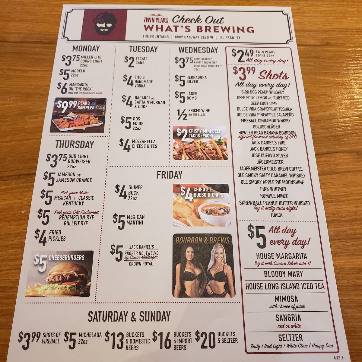 Welcome to Twin Peaks El Paso, a unique dining destination located at 955 Sunland Park Dr. Renowned for its vibrant atmosphere and exceptional service, Twin Peaks promises a remarkable experience. The standout feature of this establishment is its commitment to hospitality, as highlighted by customer reviews praising attentive servers like Gaby and Lola, who elevate every visit with their friendly demeanor and knowledge of the menu.
